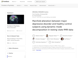 研究員:川島 一朔らの共著論文がFrontiers in Psychiatryに掲載されました